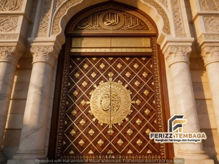 Memilih elemen dekorasi masjid memerlukan pertimbangan matang. Replika pintu yang menggunakan material kuningan atau tembaga memiliki keunggulan daya tahan yang luar biasa terhadap cuaca, serta memberikan kesan mewah yang tidak lekang oleh waktu. Semburat warna emas dari kuningan menciptakan atmosfer yang hangat dan religius, sangat cocok untuk meningkatkan khidmat jamaah saat memasuki ruang salat.